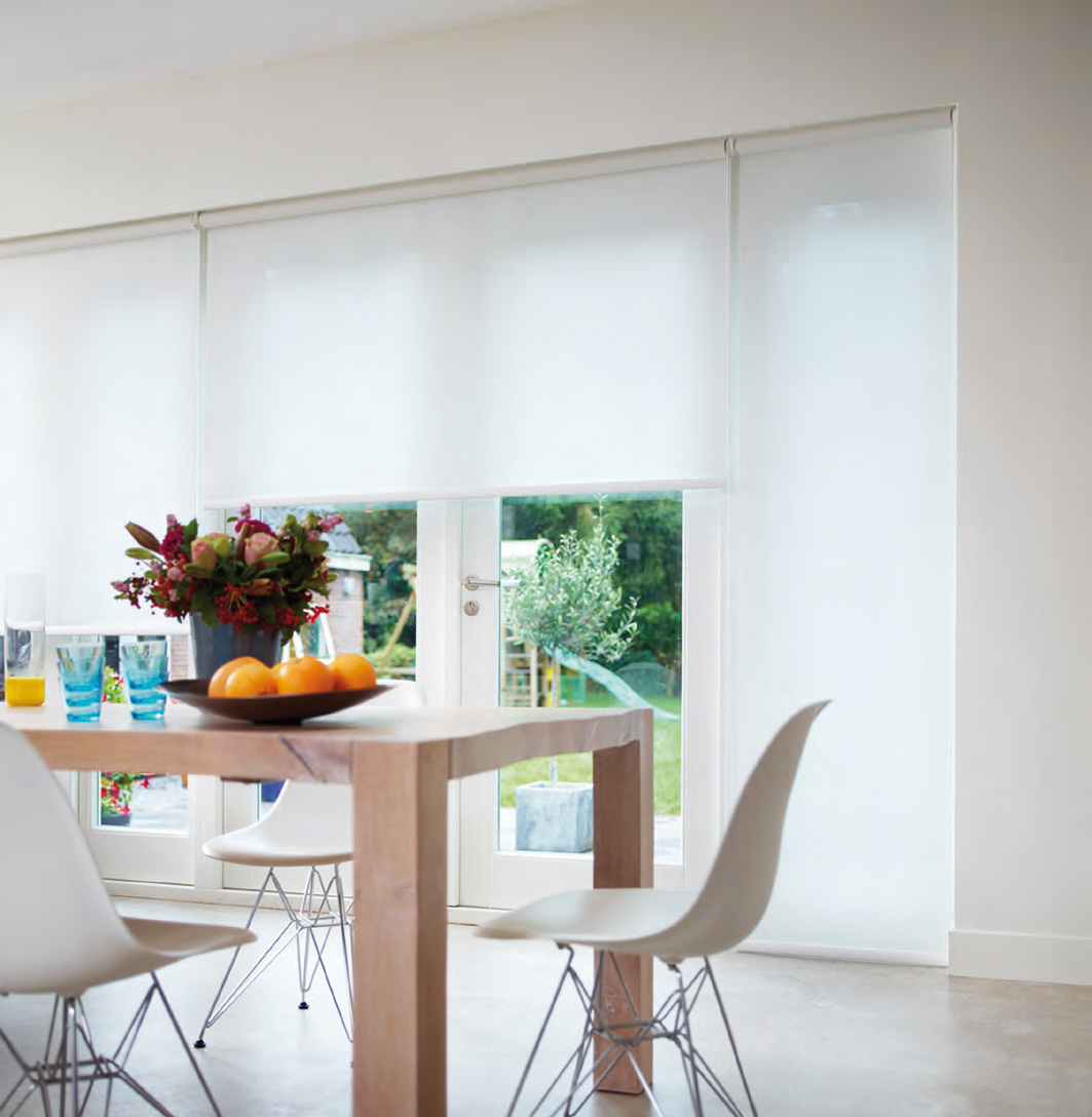 La gestion thermique (protection solaire) et lumineuse est facilitée grâce aux produits screen révolutionnaires, tout en conservant ici encore un choix important de coloris de tissus. |