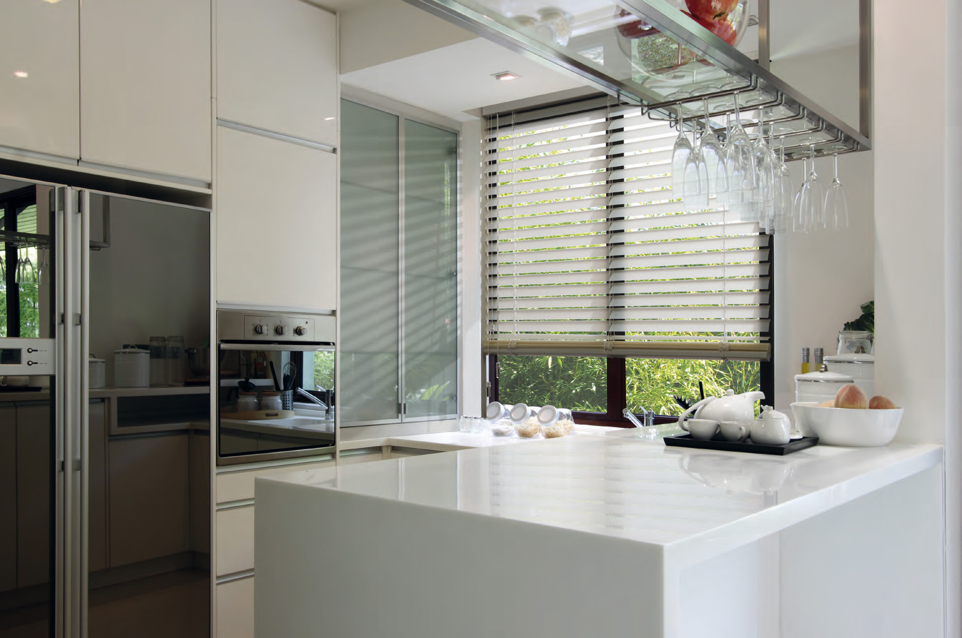 Un nombre important de combinaisons et matières, notamment pour les lames où sont disponibles différents assortiments d'aluminium et de bois : lame brillante, satinée, imprimée, perforée ou imitation bois. |