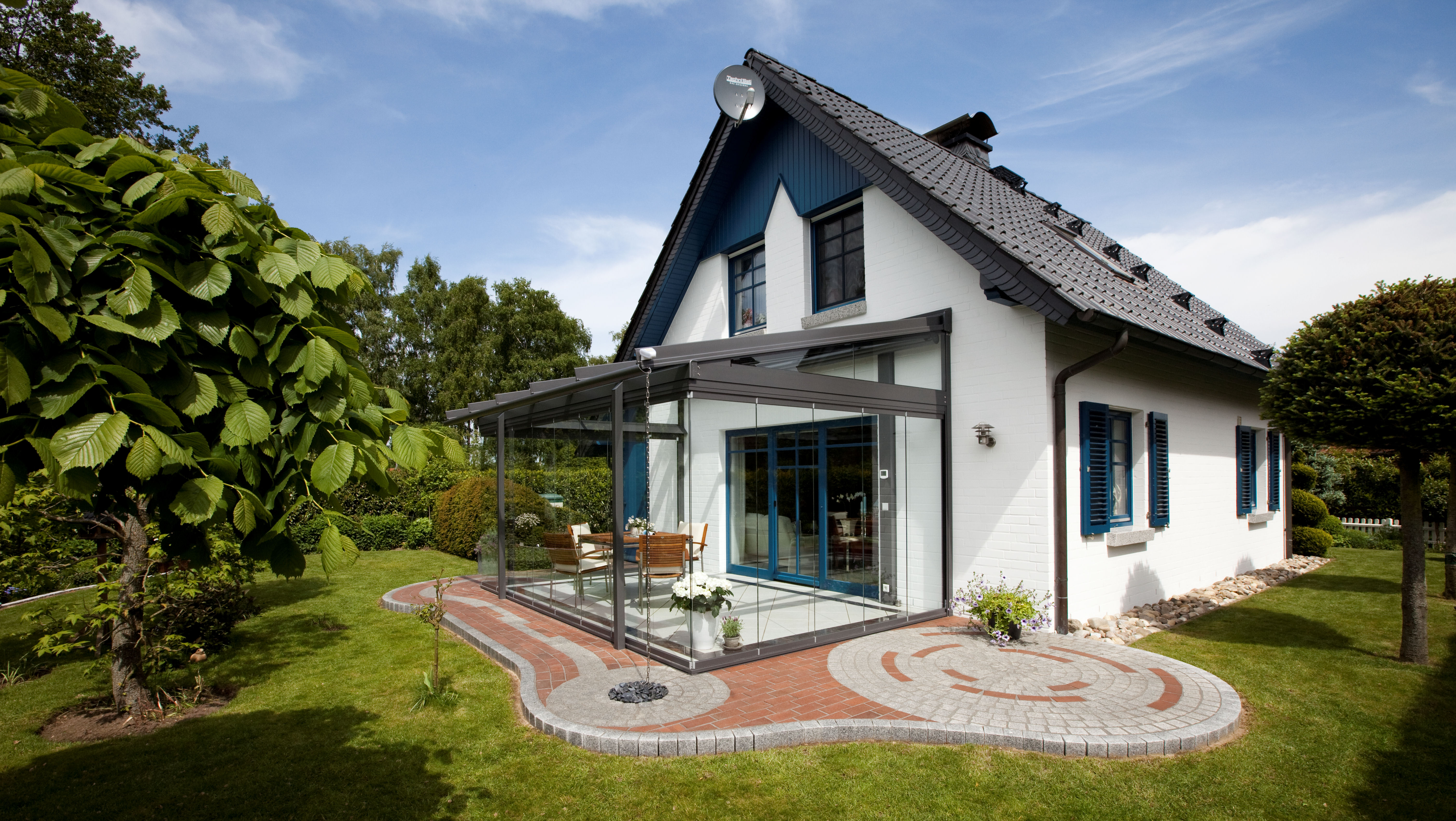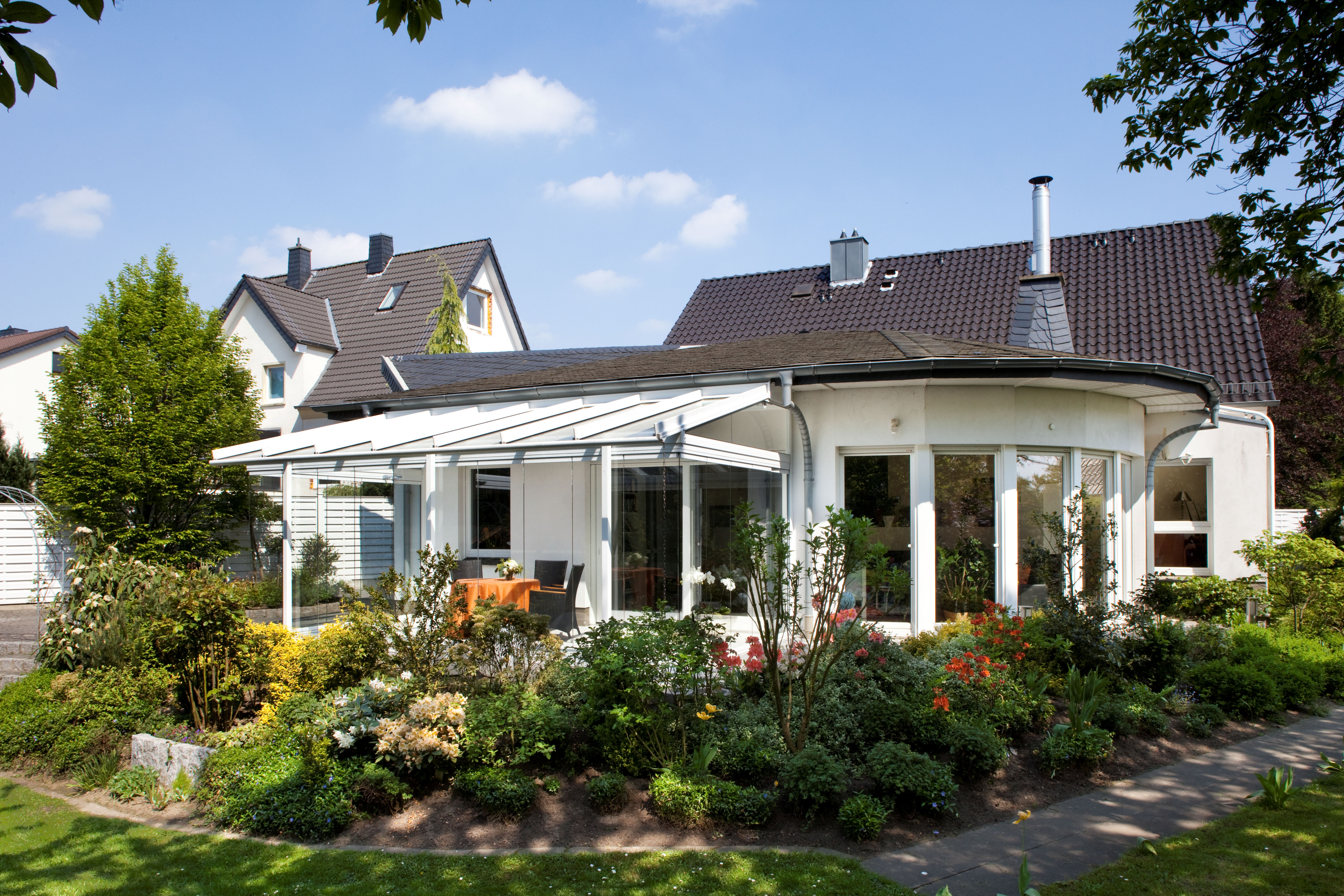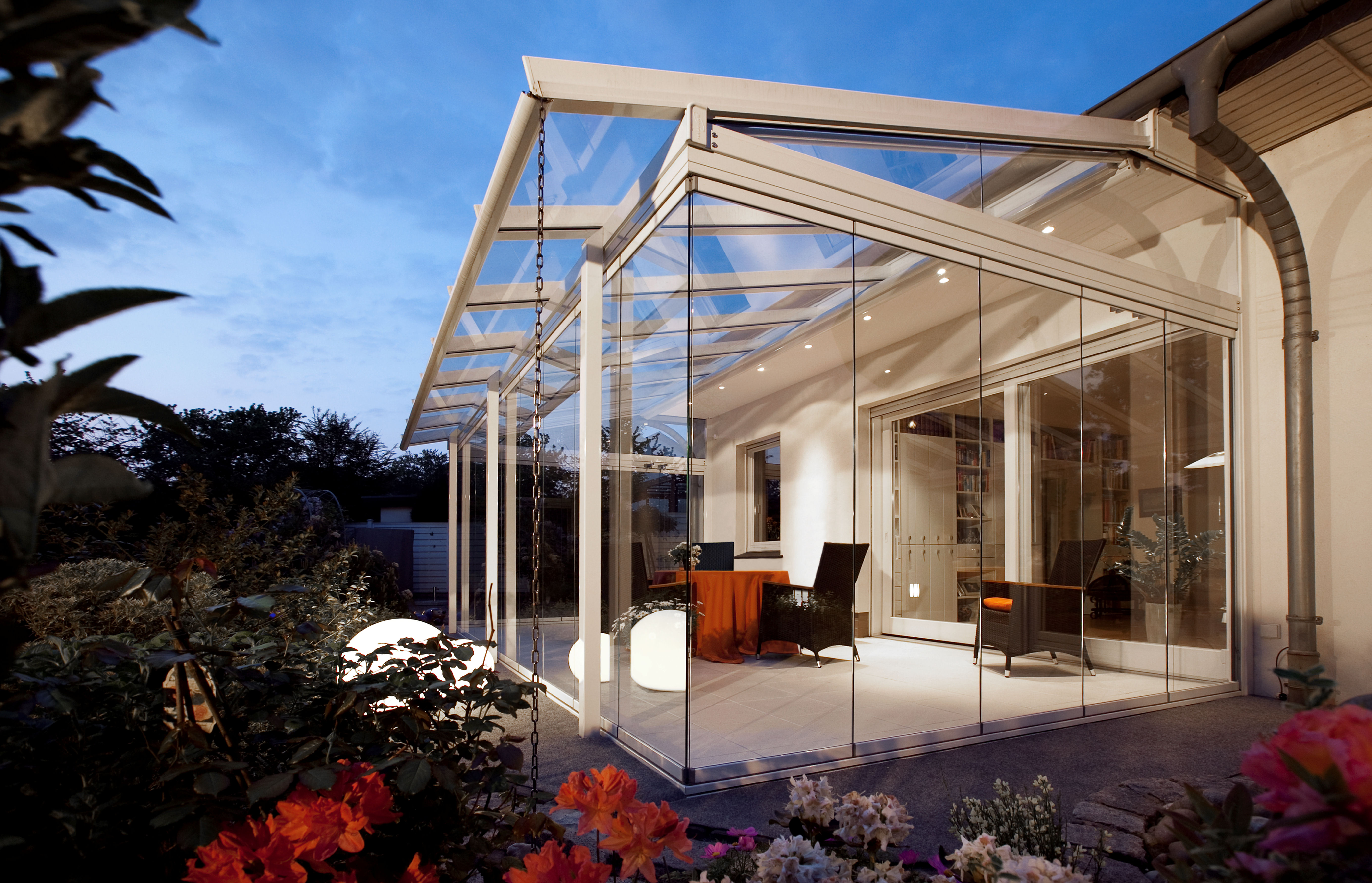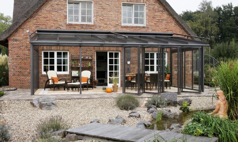 Vous pouvez coupler aisément la toiture de terrasse avec le système de vitrage de terrasse SL25 pour véranda ouverte afin de vous créer un espace lumineux mais protégé. Grâce au refoulement intégral des panneaux de vitrage de terrasse, la véranda ouverte se transforme instantanément en une terrasse couverte. Une fois les panneaux repliés, la toiture de terrasse assure toujours une protection contre les intempéries mais permet de profiter d'un espace librement exposé au grand air. Cette méthode permet confort et modularité. En associant toiture de terrasse et système de véranda coulissant vitré SL25, vous disposez d'un espace qui, refermé, sera parfaitement étanche et donc utilisable tout au long de l'année. Le débord de la toiture de terrasse confère à l'ensemble une esthétique empreinte de finesse et de légèreté. Totalement fermé l'ensemble offre une résistance supplémentaire à l'effraction. La toiture de terrasse en verre feuilletée résiste à l'enneigement et aux chocs. |